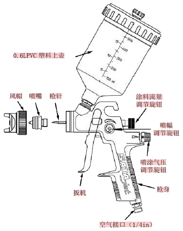 喷枪是汽车空气喷涂的基础工具,其基本结构包含枪身、喷嘴套装、控制部件和其他附件等。完美的喷涂效果离不开喷枪的这些核心部件。